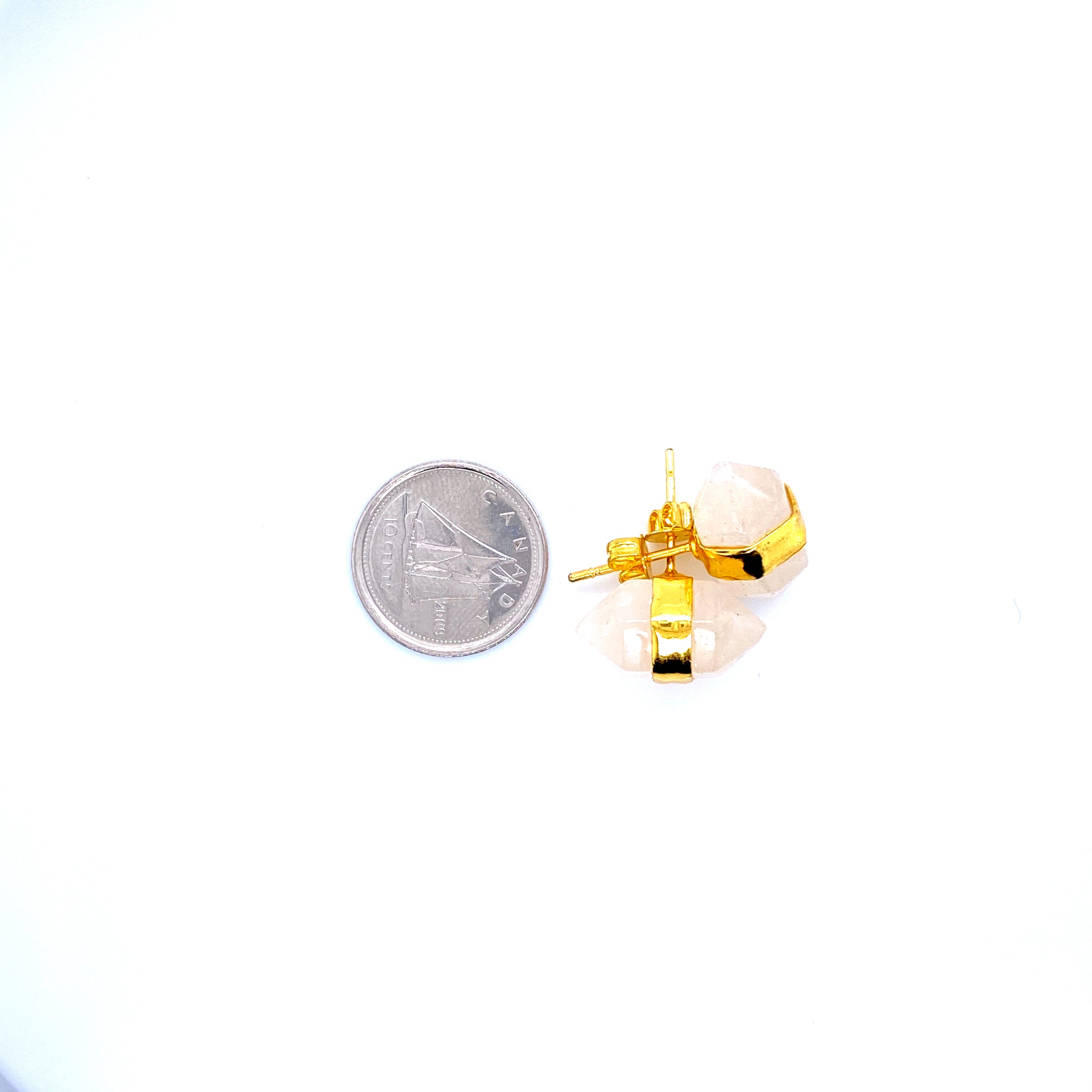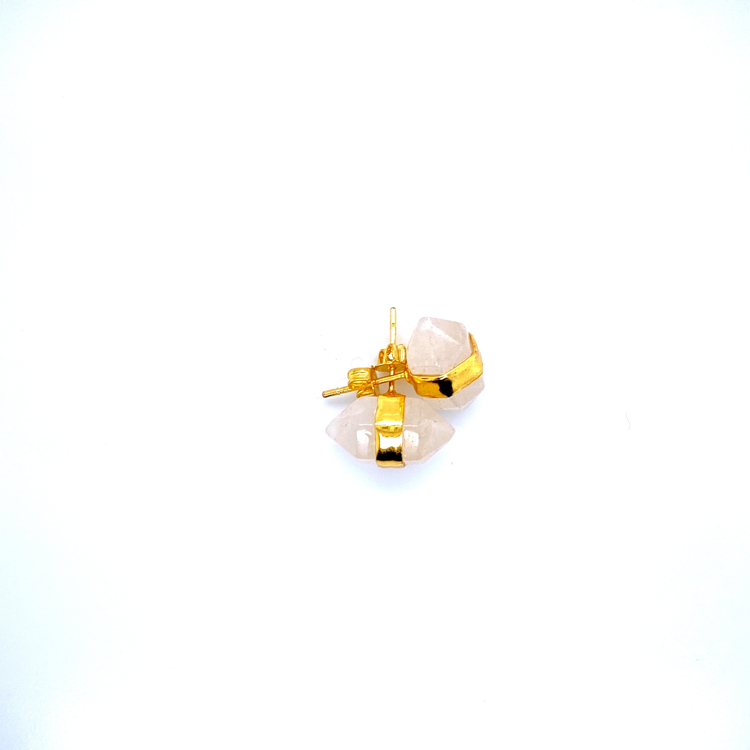 These stunning, beautiful, mesmerizing Crystal Quartz earrings are set in a gold plated silver stud, and are a great accessory to all types of jewellery. They are stunning to look at and are great for giving away to a friend or loved one. Don't miss these and others in our Clarity Crystal Bar!