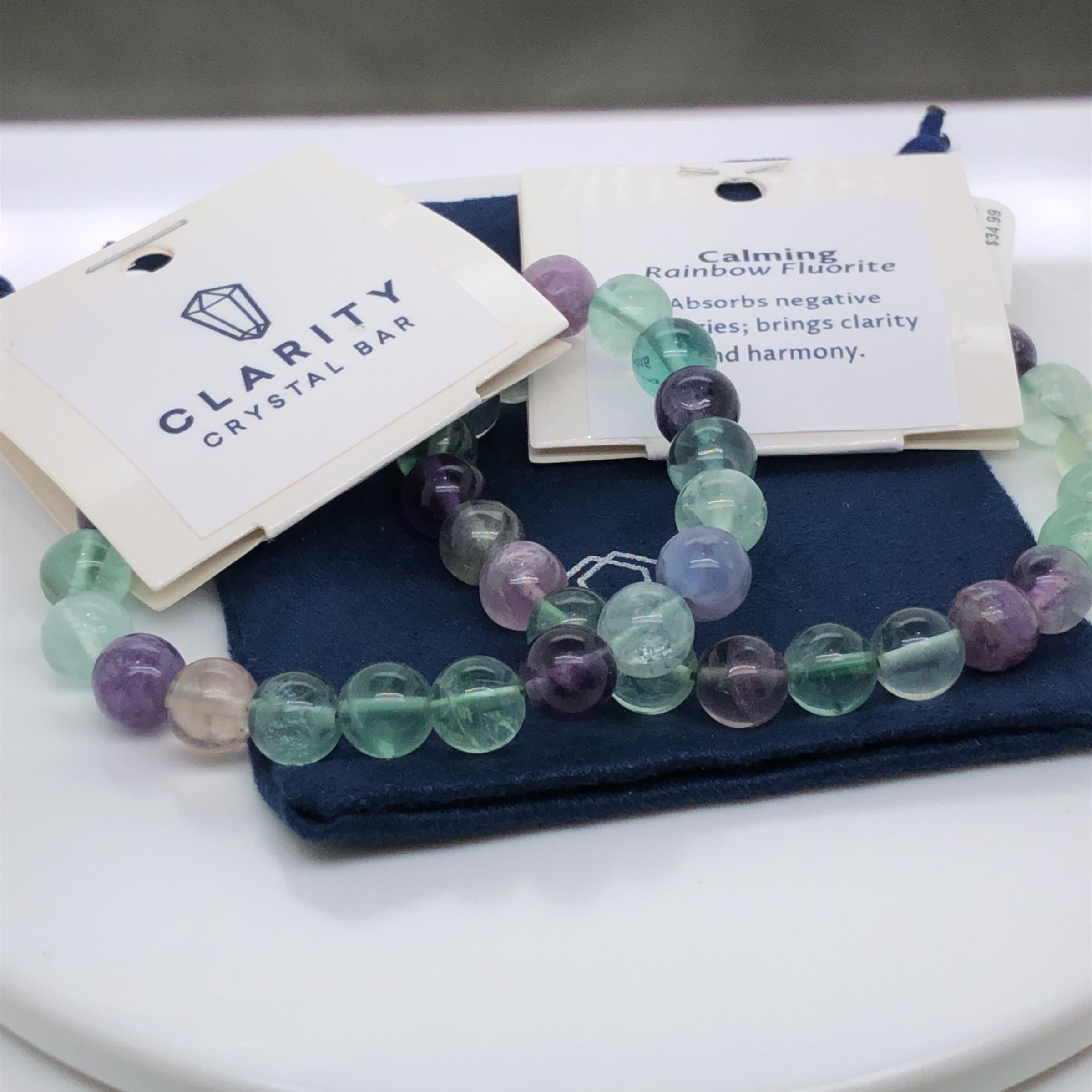 These mesmerizing Fluorite crystal bracelets are perfect for stacking or wearing on their own. They are stunning to look at and are great for giving away to a friend or loved one. Don't miss these and others in our Clarity Crystal Bar!