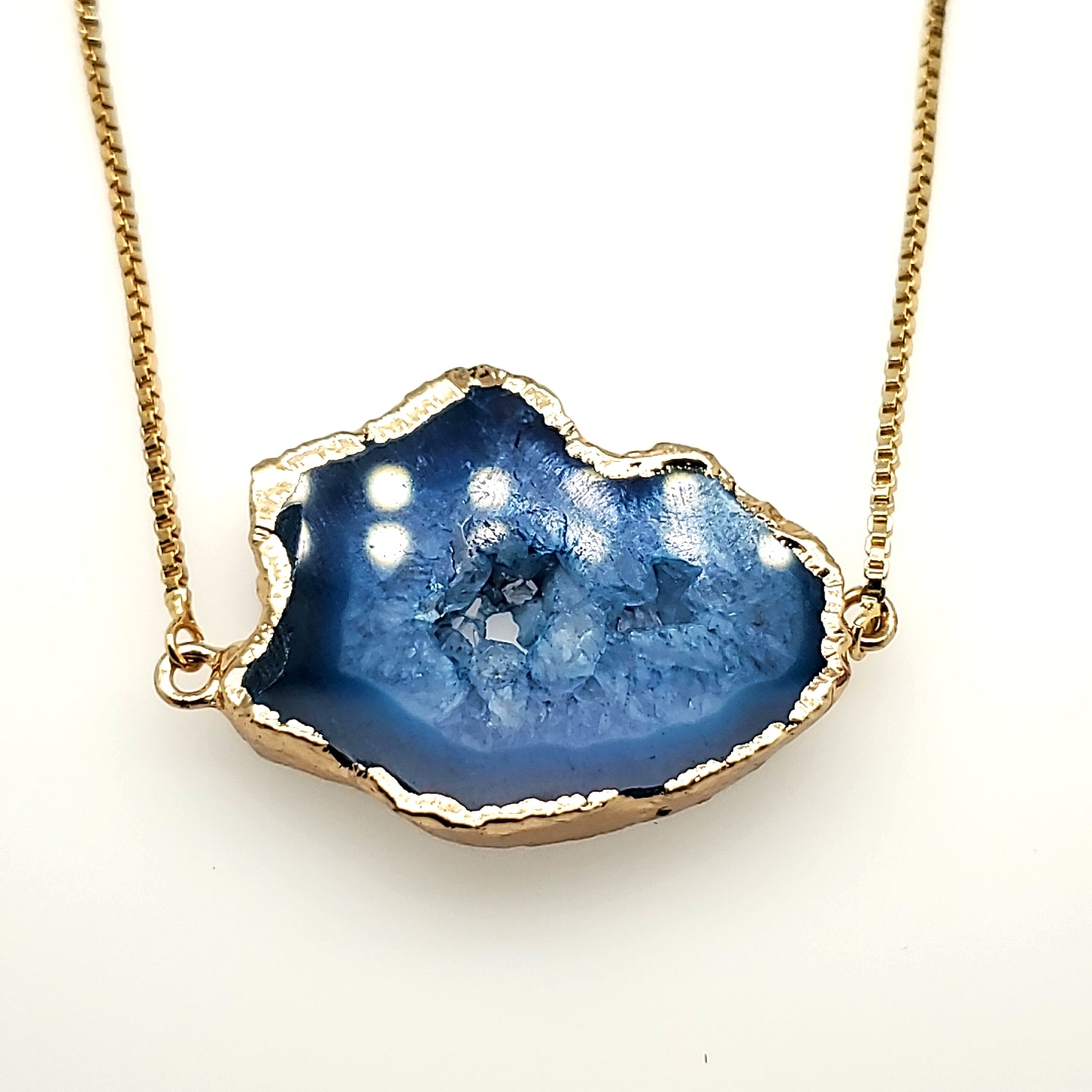 Blue Agate Druzy Necklace in Yellow