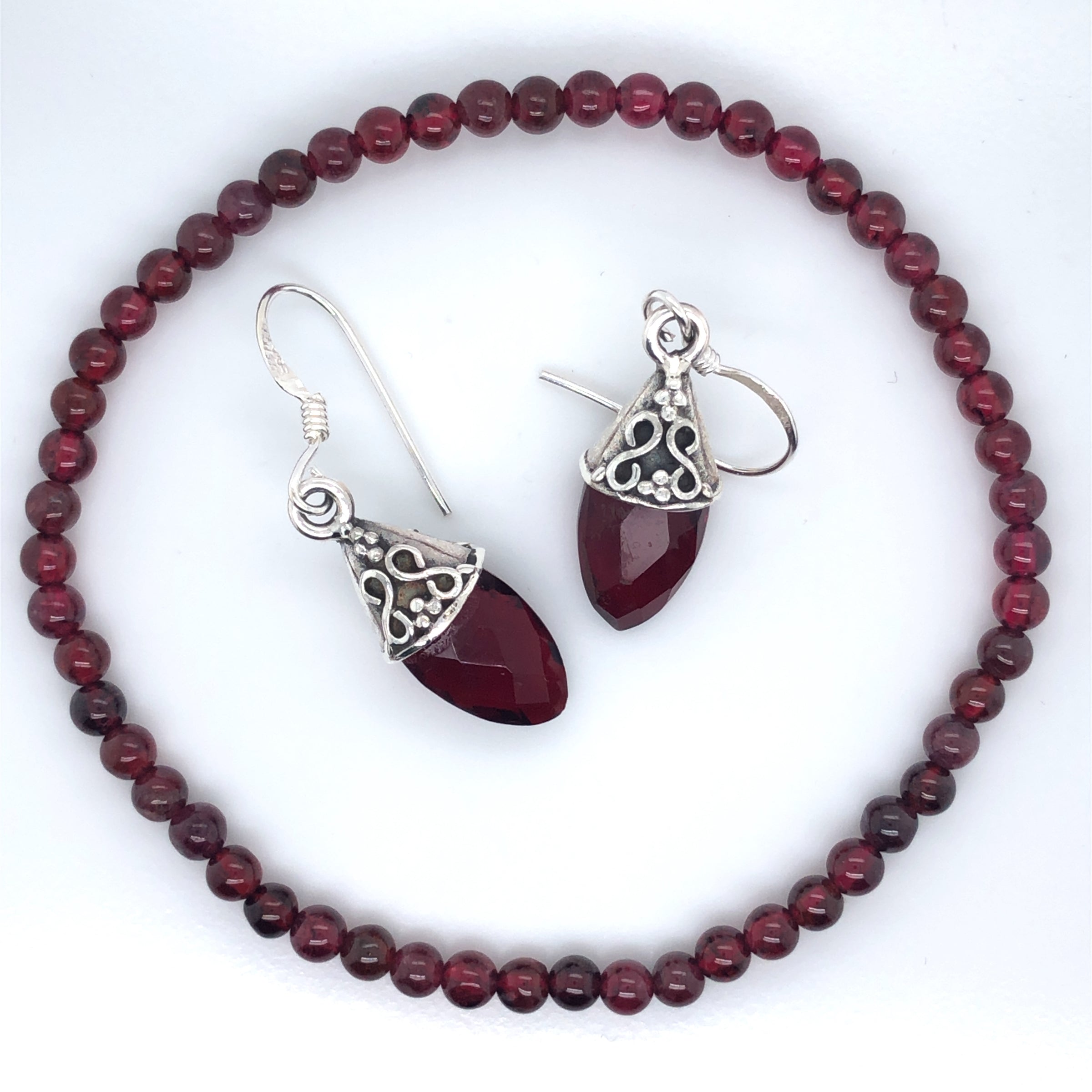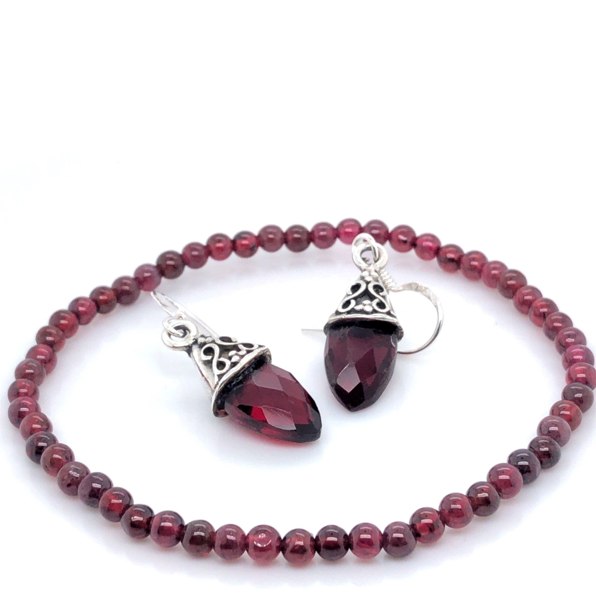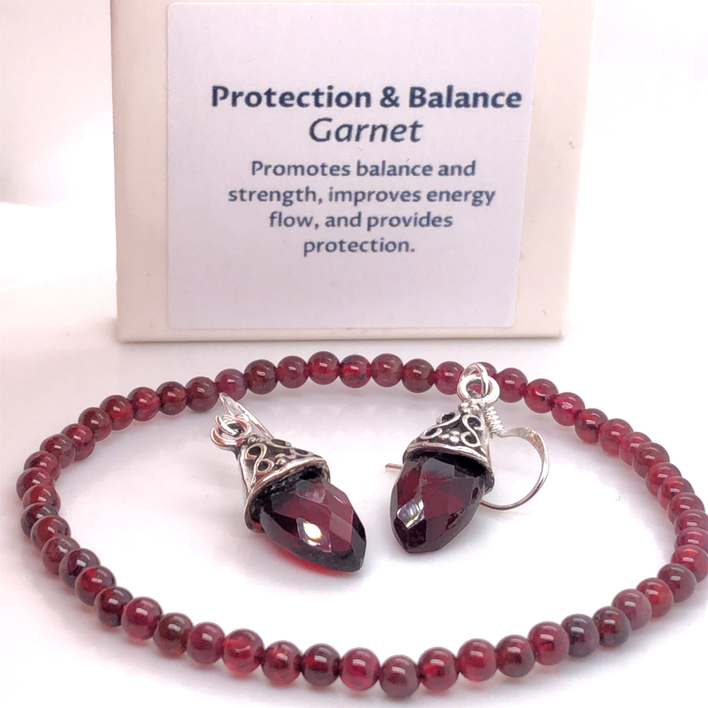 This beautiful Love Garnet Jewellery Set is as dreamy as it sounds. It features 2 pieces, including Garnet Faceted Drop Earrings & a 4mm Garnet Stretch Bracelet.