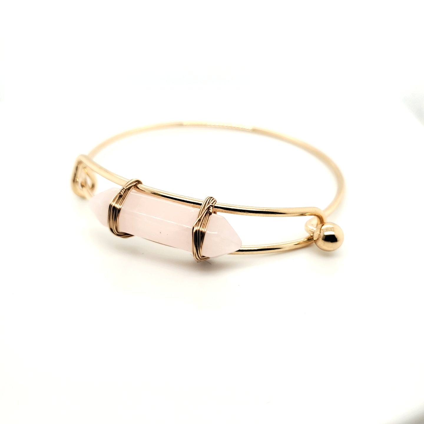 Rose Quartz Bangle with Bullet Pendant in Brass