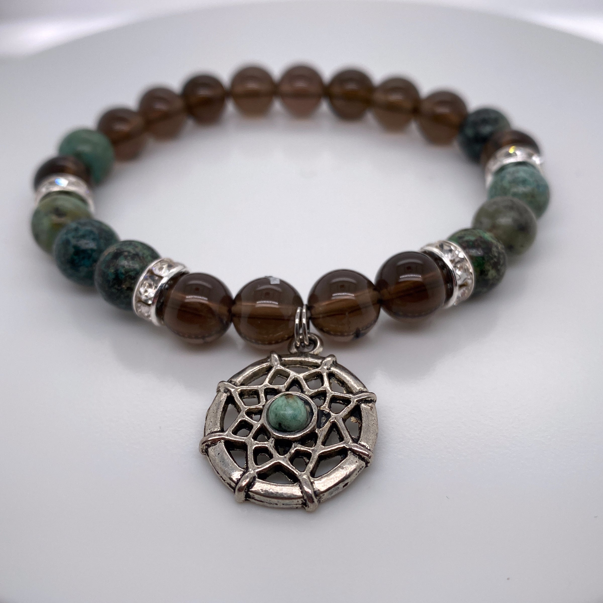 Smoky Quartz And African Turquoise Stretch Bracelet 8mm