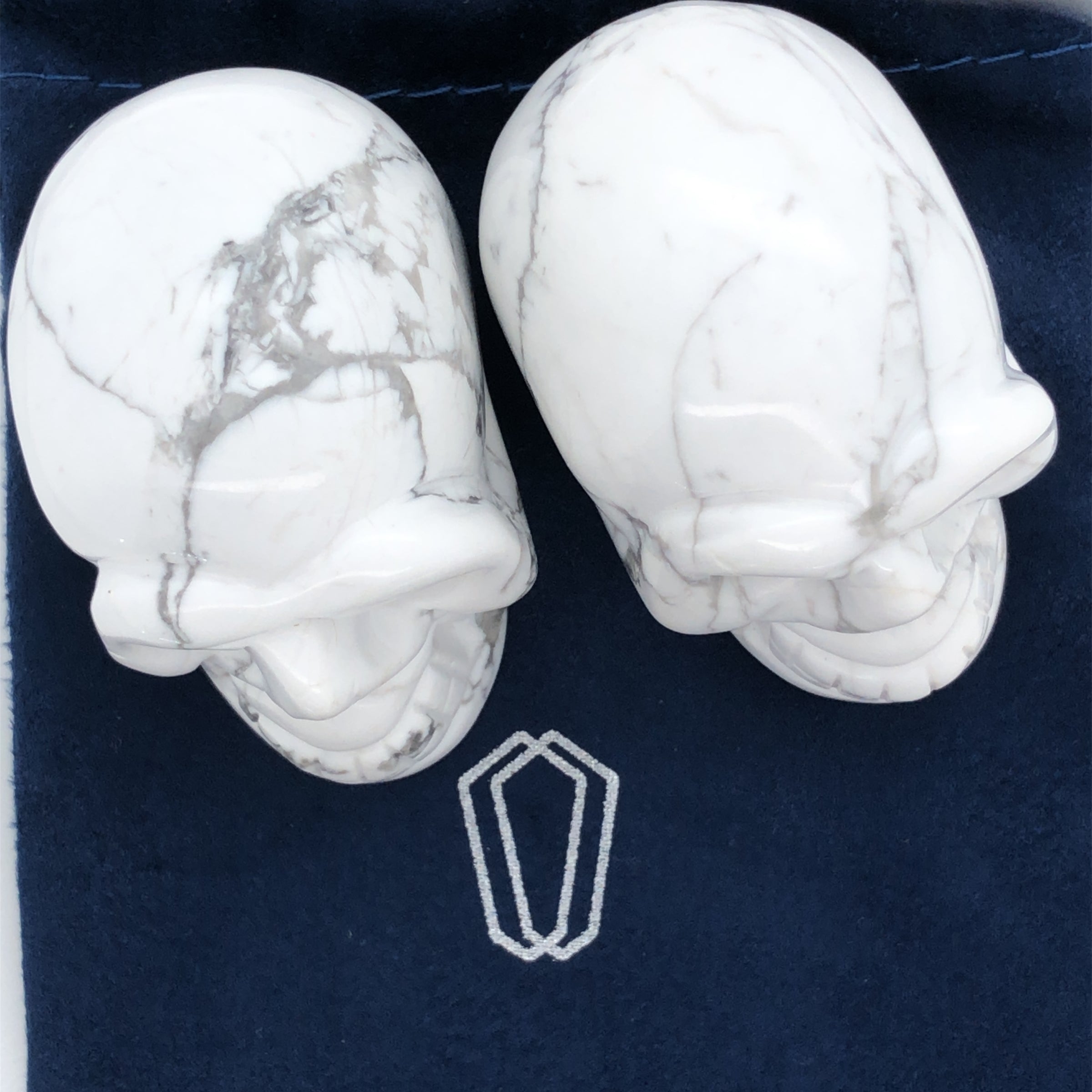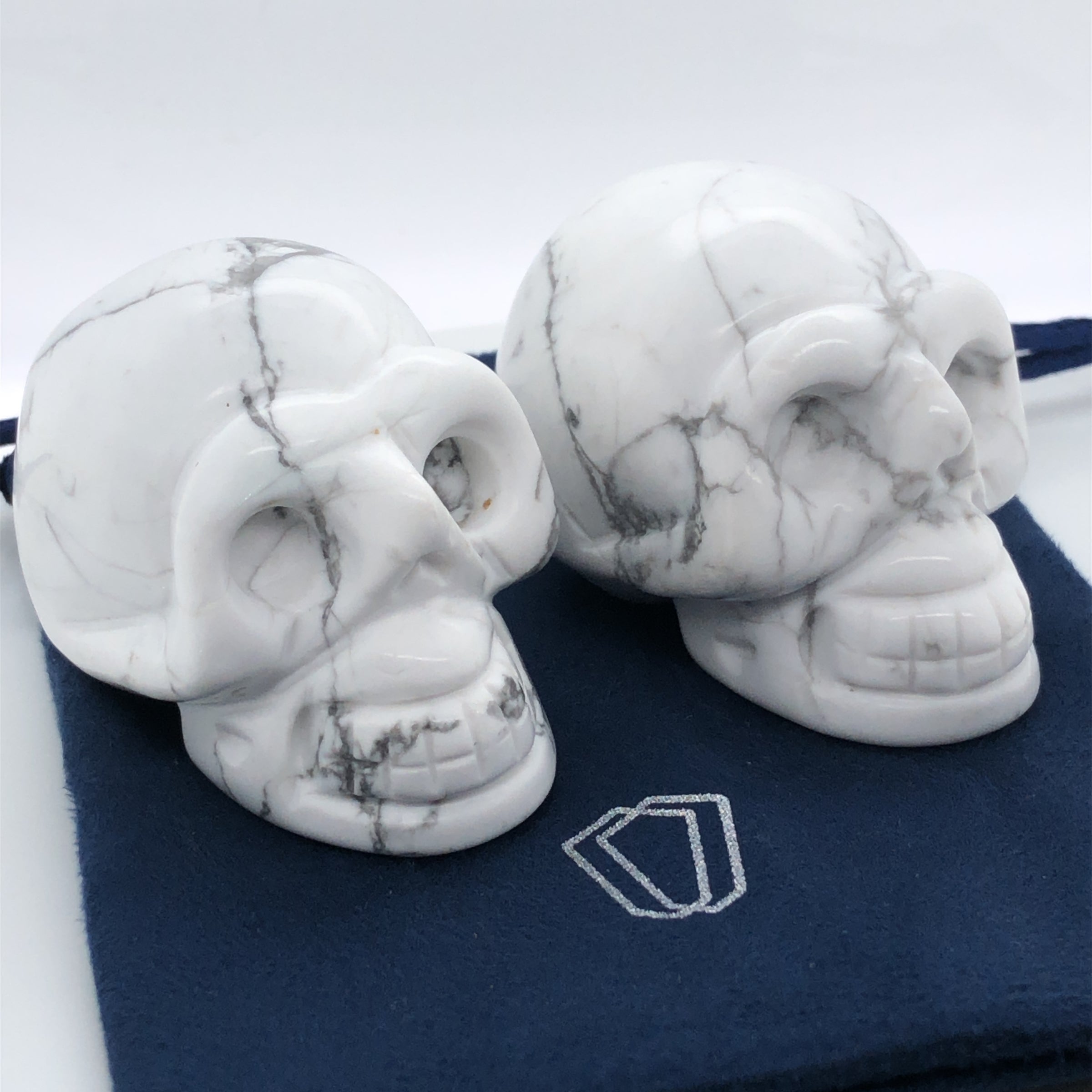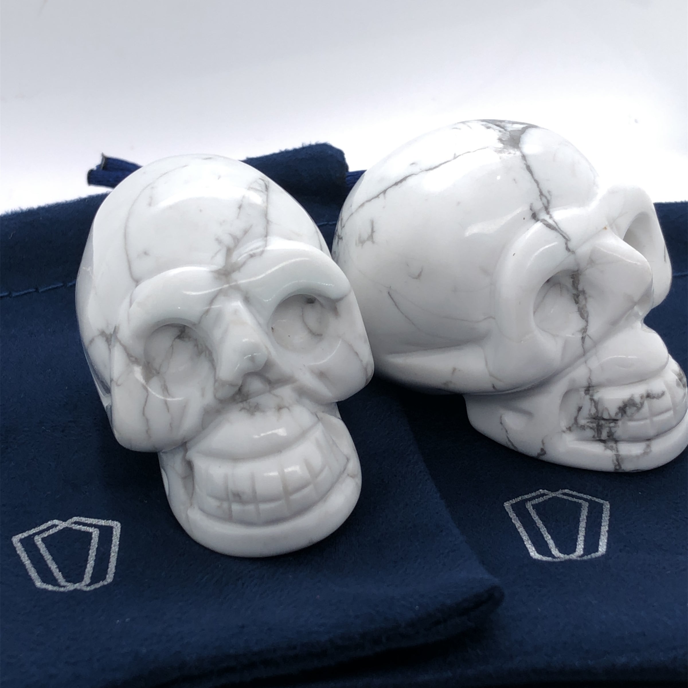 This stunning, beautiful and mesmerizing Howlite Skulls are carved from the measurements of Davinci's Vitruvian Man and are stunning to look at in our Clarity Crystal Bar!